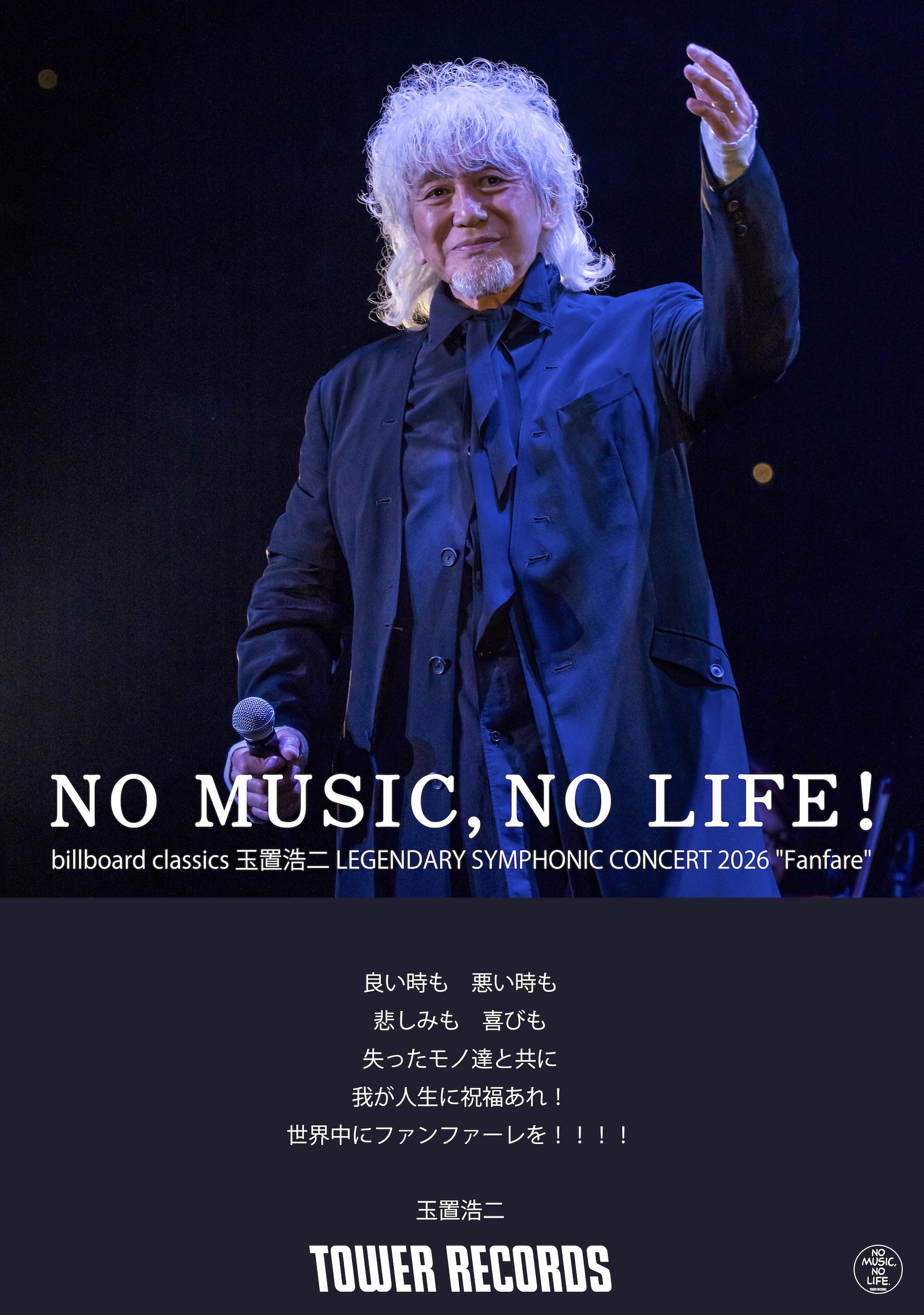 3月1日より開催される『billboard classics 玉置浩二 LEGENDARY SYMPHONIC CONCERT 2026 "Fanfare"』ツアー全会場にて、日本コロムビア商品をご購入・ご予約された方を対象に『タワーレコード "NO MUSIC, NO LIFE." コラボレーションポスター』を先着でプレゼント!